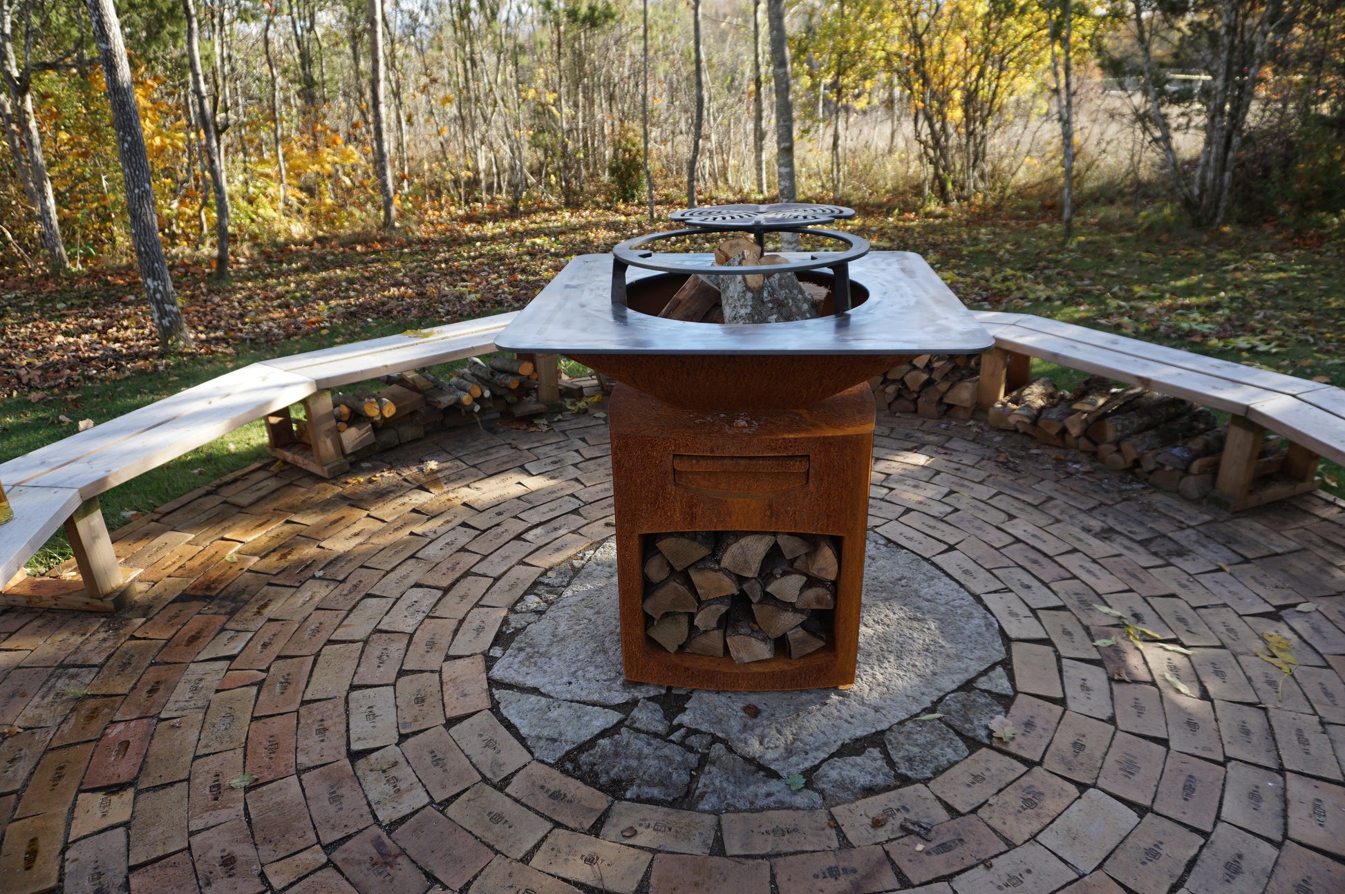 Grillin jalusta on valmistettu kestävästä Cor-Ten®-teräksestä. Cor-Ten® on vahva terästä, jonka pinnalle on syntynyt ulkoisen ympäristön vaikutuksesta luonnollinen ja kestävä patina, joka kestää aikoja ainutlaatuisella tavalla . Oikein käytettynä se on ilmeikäs, pitkäikäinen ja huoltovapaa.